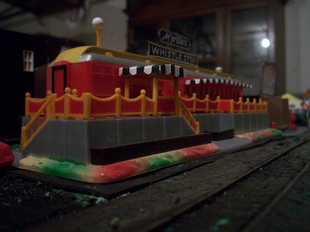 A retake of an earlier submission. This piece obtained in a trade with the amazing RaySouthernPac. Thanks Ray, I never get tired of looking at Myrtle's. The whistle works great, but the amount of labor and damage needed to run the wires through the subsurface of the layout is such that instead I am going to wire Myrtle up to a nine volt battery stowed in her interior, so I will get to hear her sweet whistle blow!