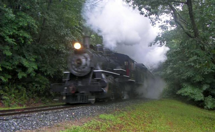 A magical journey. I love the way the rails fit like a garden foot path through the nearly tropical New England forest.