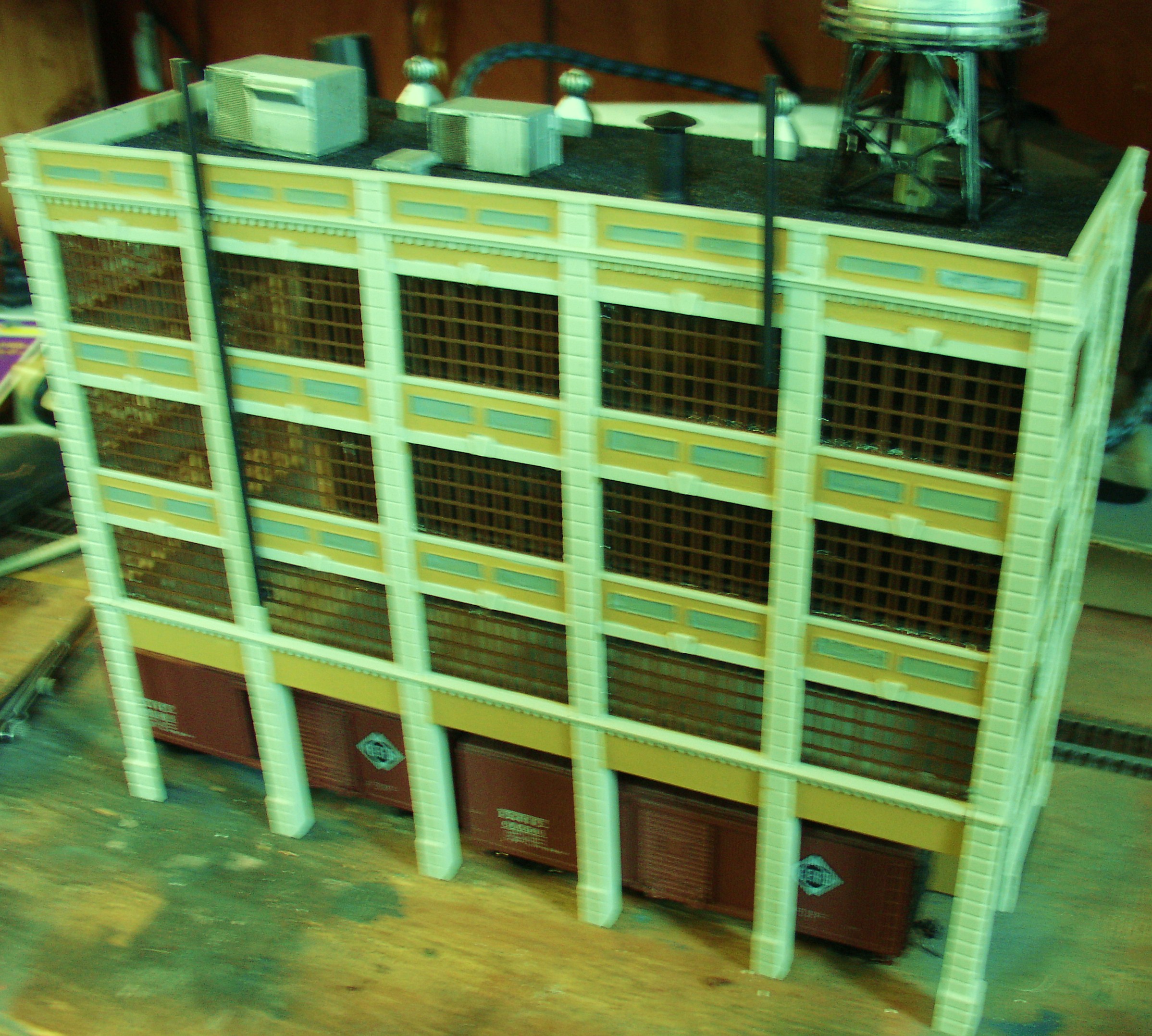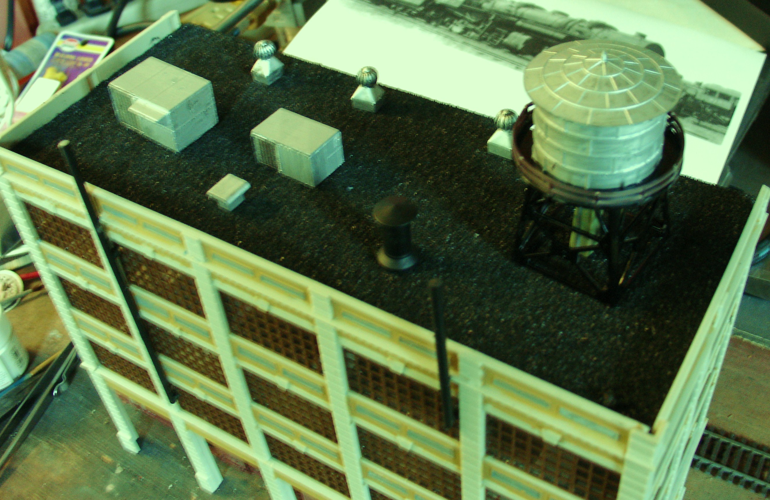 That is an N scale MODEL POWER water tank on top. Seem to feel right