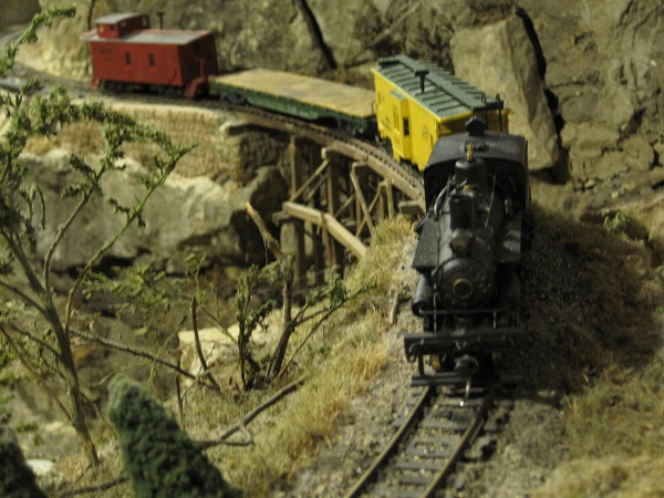 One more: if anyone has a Japanese Maple tree, they will of course be familiar with that tree's habit of dropping scale-tree-sized branches all over the place. Mine grows in the middle of a very large evergreen shrub, so all I have to do is walk out the door and pick up all the sticks sitting on the shrub. They look like perfect dead trees, all sizes from 2" to 12", and I would assume some ground foam or clump foliage can be used to make live trees of them.