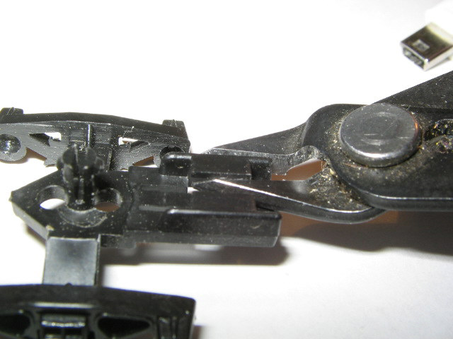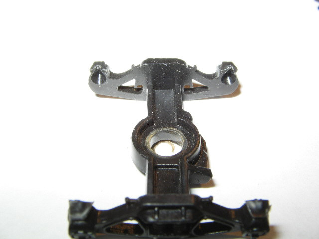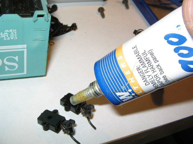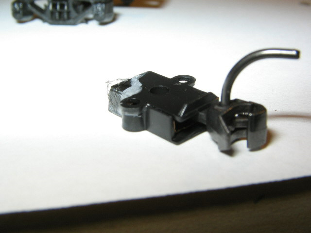 this picture shows truck being trimmed for body mounting coupler using sprue cutter. hold your cutter even and snip both sides and original coupler pin off.