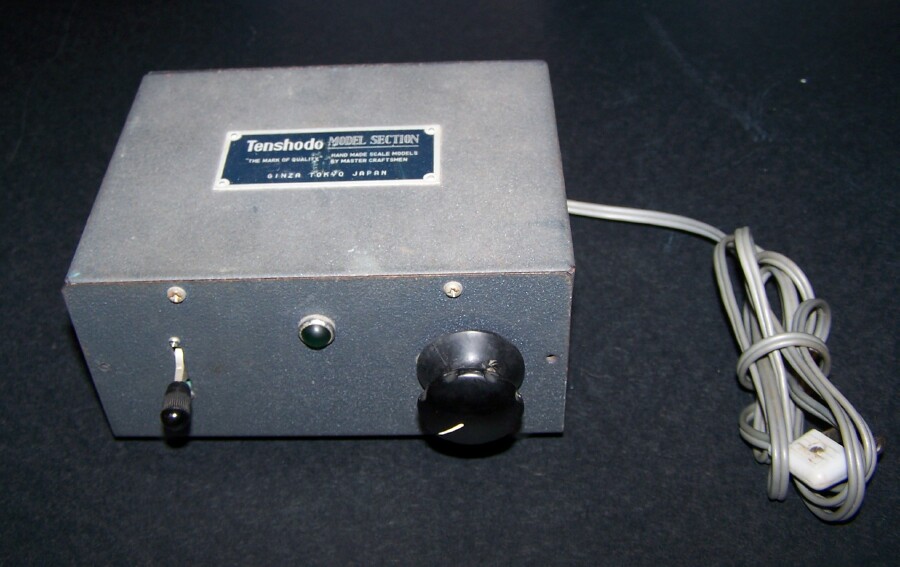 Boss gave me a bit of stuff today, among the pieces this Japanese power pack, I'd never seen a Tenshodo throttle before. He gets in some interesting pieces sometimes! Not something he'd think he could sell, so he gave it to me. :) Not often you see something like this in the USA, it does have the USA 110VAC plug on it, so it was made for the market here. Throttle lever is different, small, spring loaded to snap back to neutral. And on the closest side, not the top like most throttles.