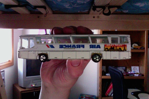 My AOTW is a Majorette made in France bus. I apologize for the weirdness of the photo, I took it from my computer because of reasons you'll find in the current LOTW.