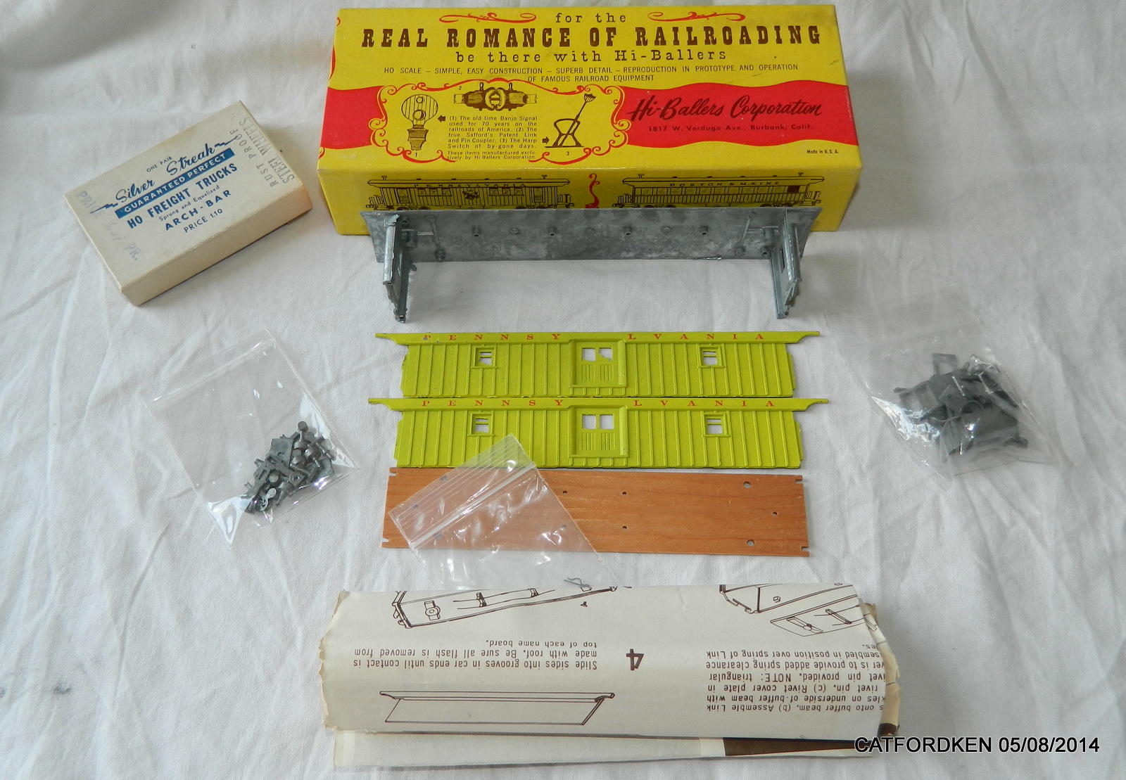 high baller kits are as follows golden era baggage car,golden eagle fast mail,golden era delux day car central valley as follows, 2xr91 N&w ventilated box car,f92 crr of nj reefer,f93 lehigh reefer,f94 cm&st p reefer and michigan central,canada southern line 34ft boxcar
