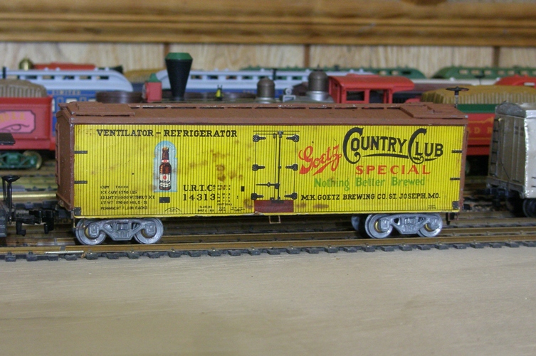Here is a very easy to tell the difference in 2 old time reefers. Both are Goetz Country Club Malt Liquor cars. frank
