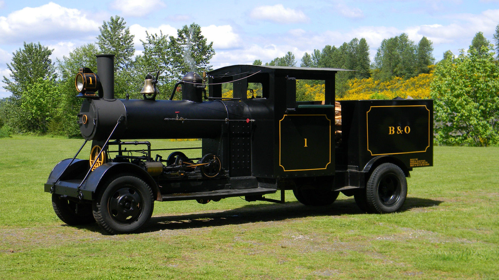 How does such a thing exist? Well, now that I think about it, it's really just a traction engine with a truck frame and some added stuff like bells, locomotive livery, etc.