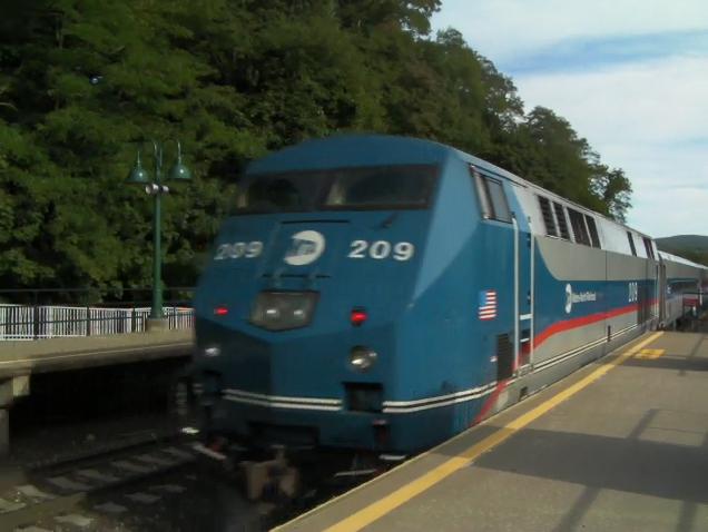 Amtrak train travels north in this video.