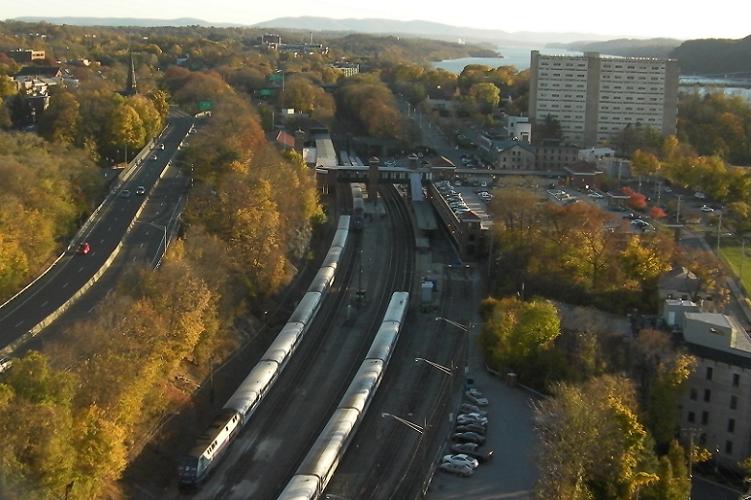 View looking south at Metro North rail station in Poughkeepsie.