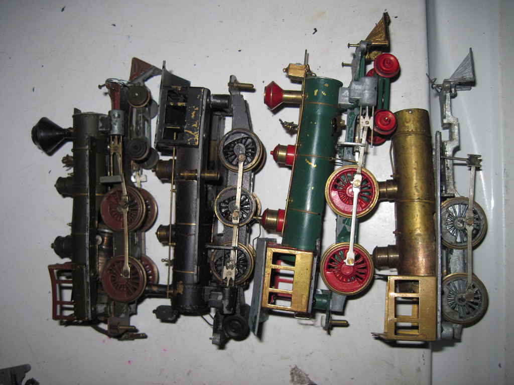 The lower corner is a Mantua early perwar Pacific/Atlantic brass sand dome. The post war models had diecast domes. One of the upper domes may be the smaller dome for this loco too. It is hard to tell from a straight down shot.