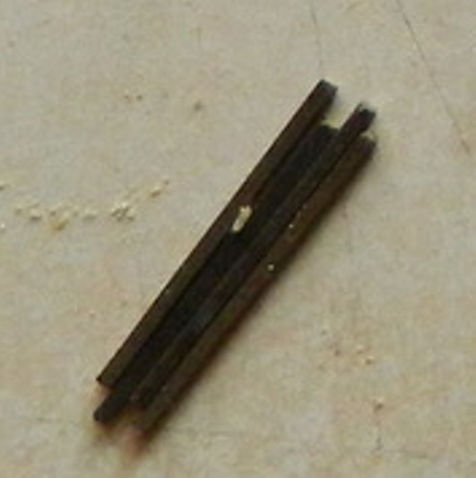 Lower left - boxcar ladder, made by Globe/Athearn, plus somebody's worm gear. That's a quality ladder.
