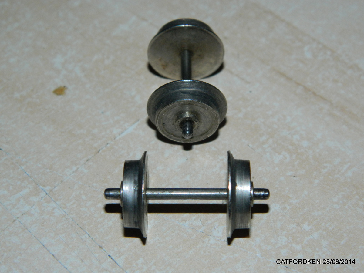 these 2 are same size as the mantua trailing truck ones shown earlier but axles are thicker  this pair are totally different to my mantua pacific