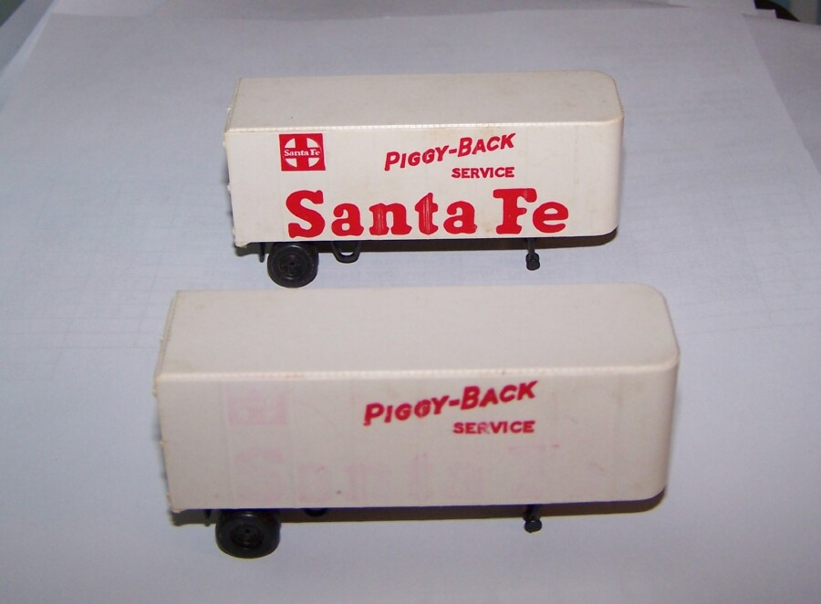 Since I'm modifying my Tyco flats and piggybacks, I've been thinking of what to run on them. Looking at the white trailers with Seatrain and Santa Fe lettering, I'd love to find some plain white ones that would fit in the Tyco orange holders. Does any company out there make generic piggybacks that you can detail/paint/letter yourself? I did a brief Ebay search today, but didn't find any plain vanilla ones. Some Athearn Jarrett Cooper were the closest I found that had minimal logo to remove, and were white. I'd like to do some AMC car themed trailers. Of course I want the trailers to fit the Tyco piggyback, so they have to be the small trailers. If anyone knows if any generics are available, and where, post me a line, please!