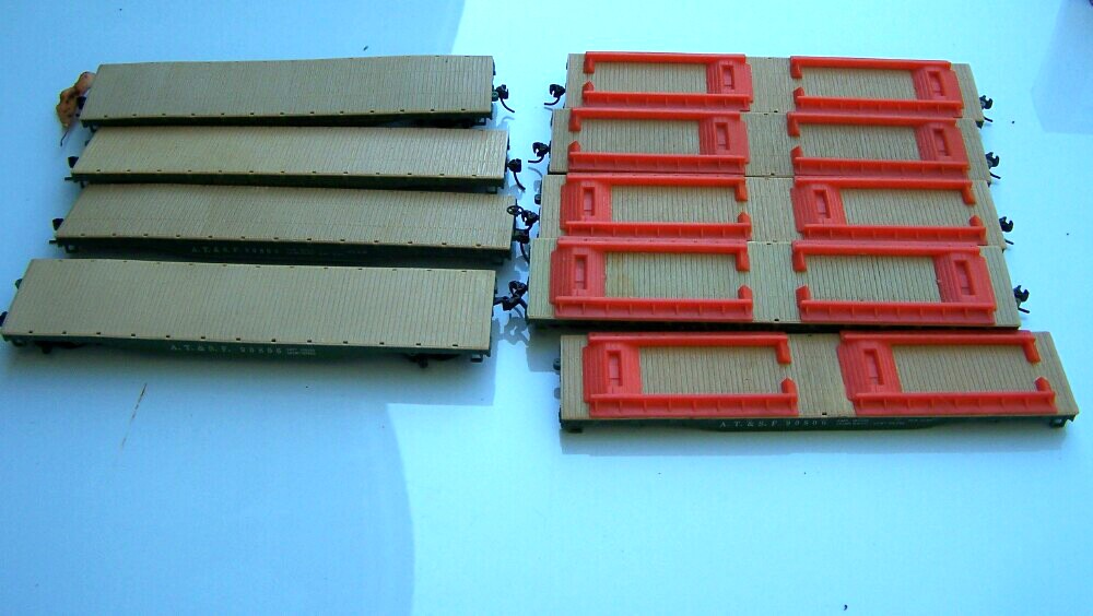 AFter tossing in bed at 3:30 AM, I finally got up to do something, and started pulling out my under-bed train storage, as I'd forgotten what I had there. Found a box with more Santa Fe trailers (5) and the orange pieces that hold them on the flats (4), so I can finish a couple of the flats now that were missing them. Yay! So far no more flats or AL's, but I have more stuff to pull out. Just took a 5:00 AM break to post a few pictures, then back to it. Wife is out of town for 4 days, so I'm not disturbing her at all. Jerry