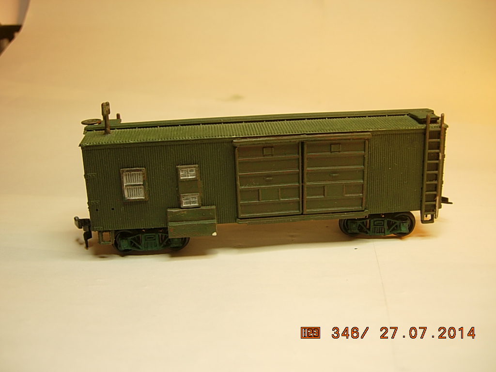 Sorry, I should have said. It was built on an MDC wood boxcar of some kind. I just noticed now the brake wheels on both ends. I got this with other stuff in a box of "here's some more stuff for your collection" from David at The Railhead.