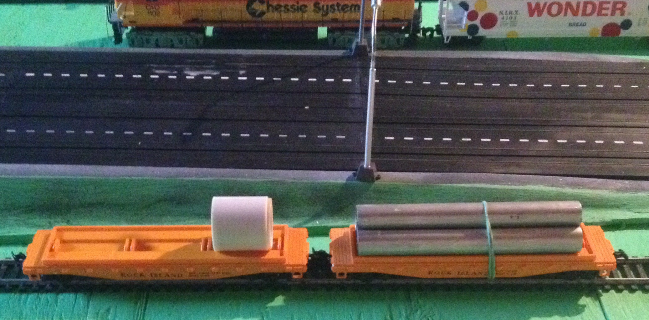 My car of the week is an old Rock Island flat or two. I believe it could be purchased with the red pipes or the culverts. Metal parts make this flat kinda heavy... I like this item and have a third one somewhere...
