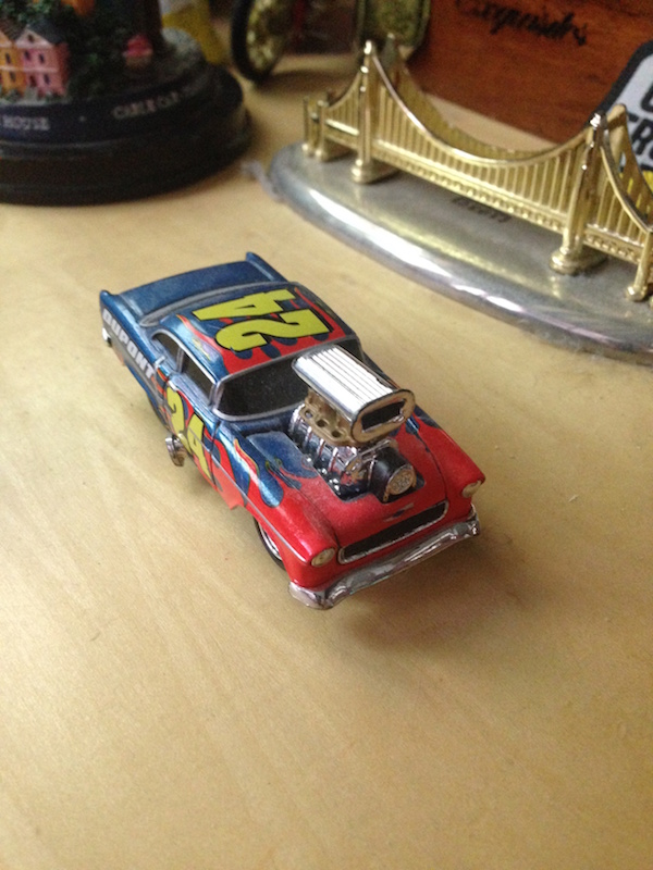 This week, my AOTW is a Funline Muscle Machines Dupont 55 Chevy. I got it at a train show late last year along with a patriotic version of it for $5. If you're wondering about the patriotic car, I'll be posting it in next week's AOTW and in that one I'll explain what exactly it was made for and why I'm waiting till next week.