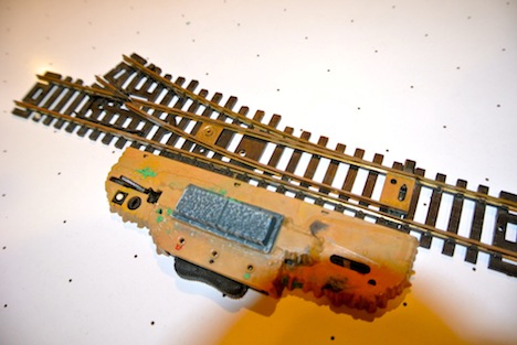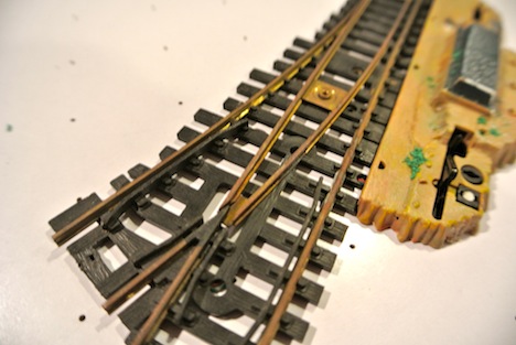 My AOTW is a 3-way turnout made by some crazy Italian company I've never heard of, called Casadio. It's got horrible brass rails and is probably the cheapest 3-way turnout there ever was.