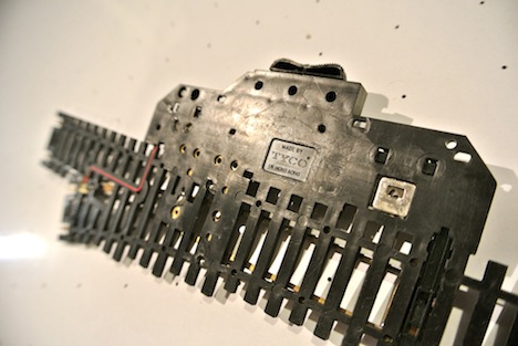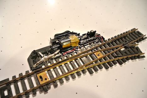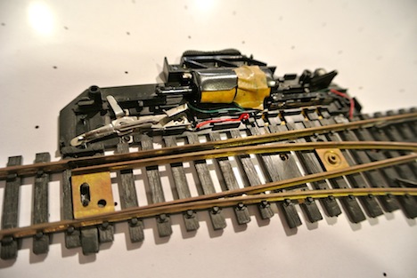 My AOTW is this super nice Tyco turnout This is the first time I have seen one of these and I am just blown away This is a moveable frog turnout and the workmanship is impeccable The switch machine detail is very well executed The electrical setup is unbelievably sophisticated for an item of this vintage and features power routing for the points and frog and it looks like activation contacts for signals and the mechanism also includes sliders for a signal indicator (broken/missing) on mine This might give some indication of the workmanship involved, it says made in Hong Kong
