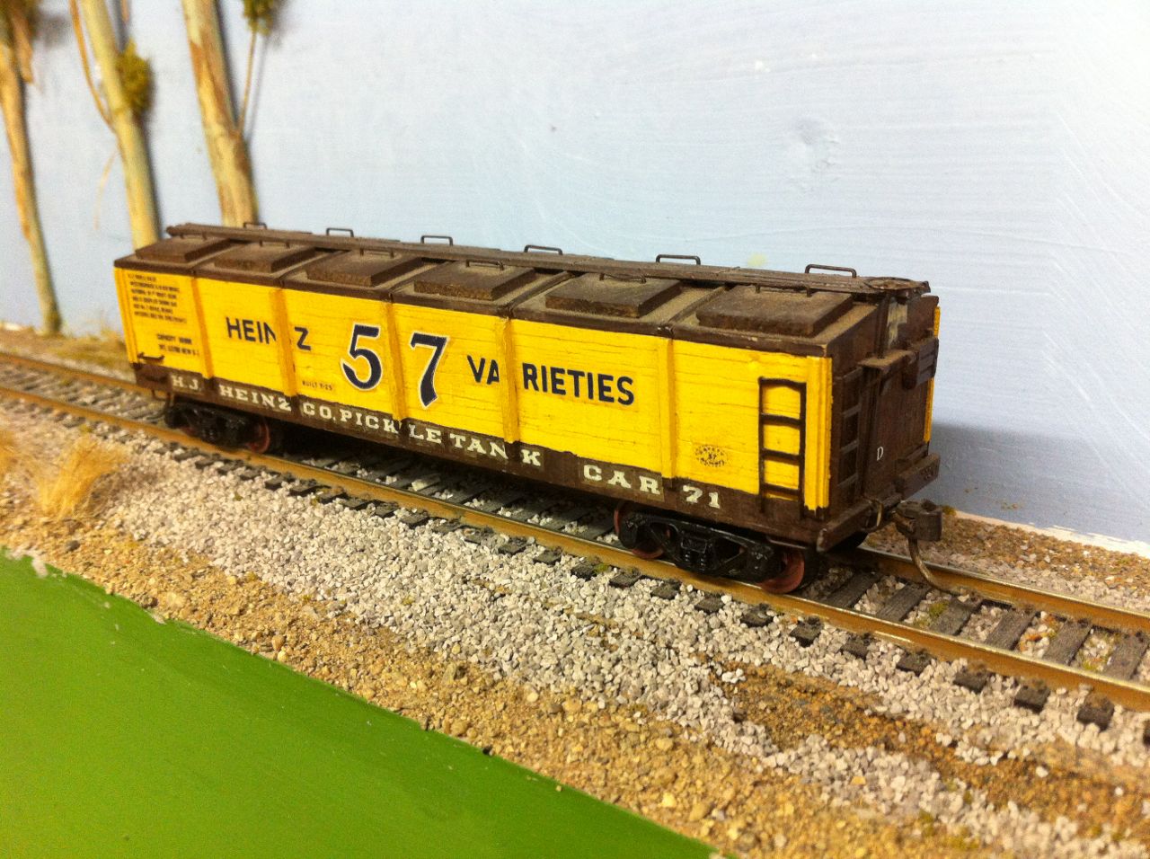 Also, Redwoods - you actually have me stumped! I haven't the first idea who would have made that off the top of my head. However, I do know that you can still buy cardboard car sides for this car  http://www.ebay.com/itm/HEINZ-PICKLE-VAT-CAR-wood-era-HO-scale-printed-sides-roof-/371135699107?pt=Model_RR_Trains&hash=item56696958a3