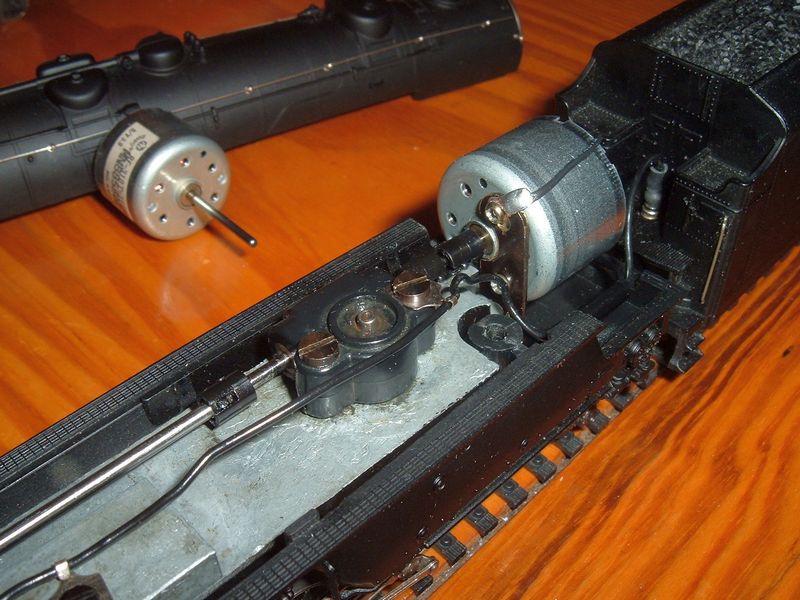 The Y6b has a gear reduction set installed, which is essential with these for a reasonable speed range. The Mabuchi pictured isn't the one that made the final cut. I went through a number of them and settled on a Mitsumi with lower RPMs. I also have a vertical motored version of the IHB 0-8-0 that got a spindle motor like the one in the background (main difference is the longer shaft) with a NWSL gear set.