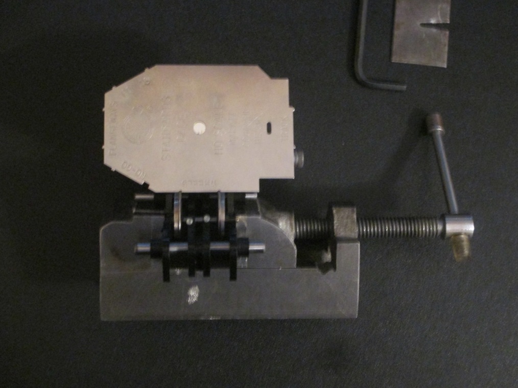 * Photo 6 is the quartering tool held in a vice, it has been properly pressed on press on. You can see the gauge is correct.