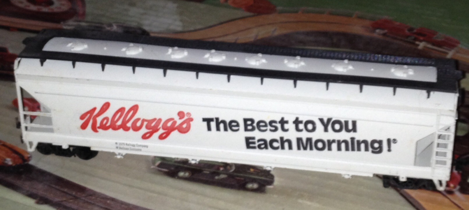 I first listed this hopper on here as Tyco... But then noticed it was dressed down more than I remembered the Tyco version being. So I searched ebay for "Kellogg's Hopper", and quickly found the AHM piece shown here... I like the clean, quiet look of the AHM hopper...