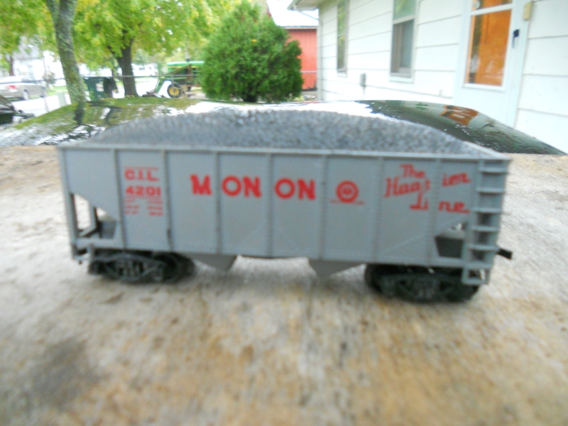 I picked this up yesterday for only $5.00. A Varney Monon hopper with coal load. I put on trucks from the parts bin. In real life, it would be a pre-1956 car, as it has CIL reporting marks. In 1956 the reporting marks changed to MON.