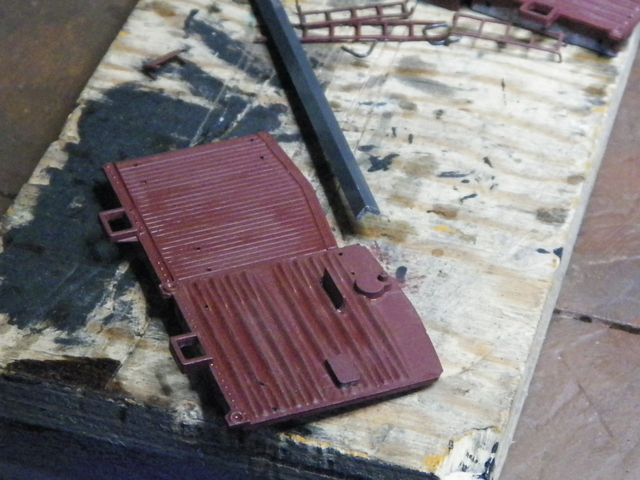 One thing I learned relatively early on was that my plan to use the end of a Mantua Refrigerator Car (because it is modeled to look like wood siding) wasn't going to work without some modification . . .