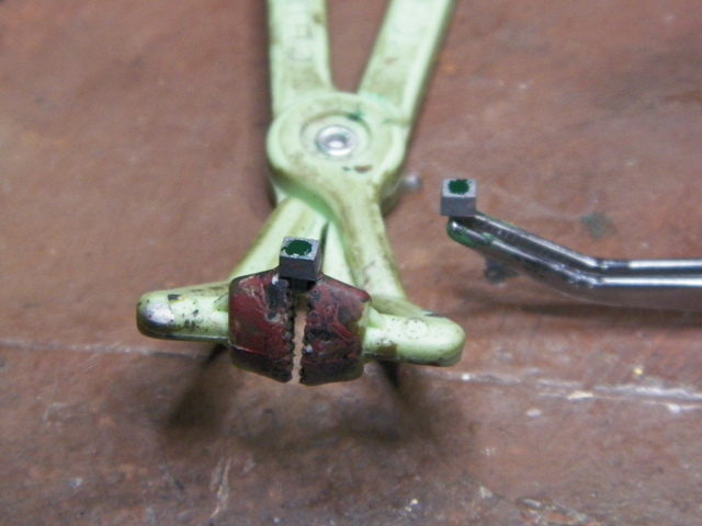 I didn't get many photos of the beginning of the project, but here's one of messing with the marker lights. The "marker lights" as they are cast are pretty utilitarian . . . none of those fancy cast brass cannonballs. I thought some about getting some Cal Scale or what have you replacements, but I wanted to try and stay true to the "model" . . . "toy train" that it is. There is something about the simplicity of design that is used to "convey the idea" that this could be a real caboose . . . if that makes any sense. So I decided to mess with the kit supplied marker lights. I tried a few different things (a jewel looked a bit "over the top", particularly since I didn't have a good idea for getting the cupola mounted beacon to "appear" "glassy"). What I ended up doing was "filling" the light depression in the casting and then getting a meniscus bubble of clear glaze to lay on top. I'm not sure yet what I think about them, but they don't have the glaring presence of the square boxes that they are.