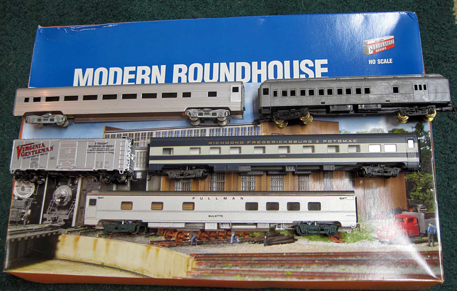The big purchase was the new roundhouse kit, still sealed in the box. Got it for $50, which I thought was fair. Found an aluminum passenger car (unknown make) with sprung trucks (has Tenshoda stamped on them). Anyone know anything about this car? The floor is like a pressed cardboard/masonite. Then a undecorated Penn Line combine, an Athearn box car kit (I built it before taking the pic), a Rivarossi RF&P sleeper, and a freelanced Rivarossi sleeper/lounge with full detailed interior.