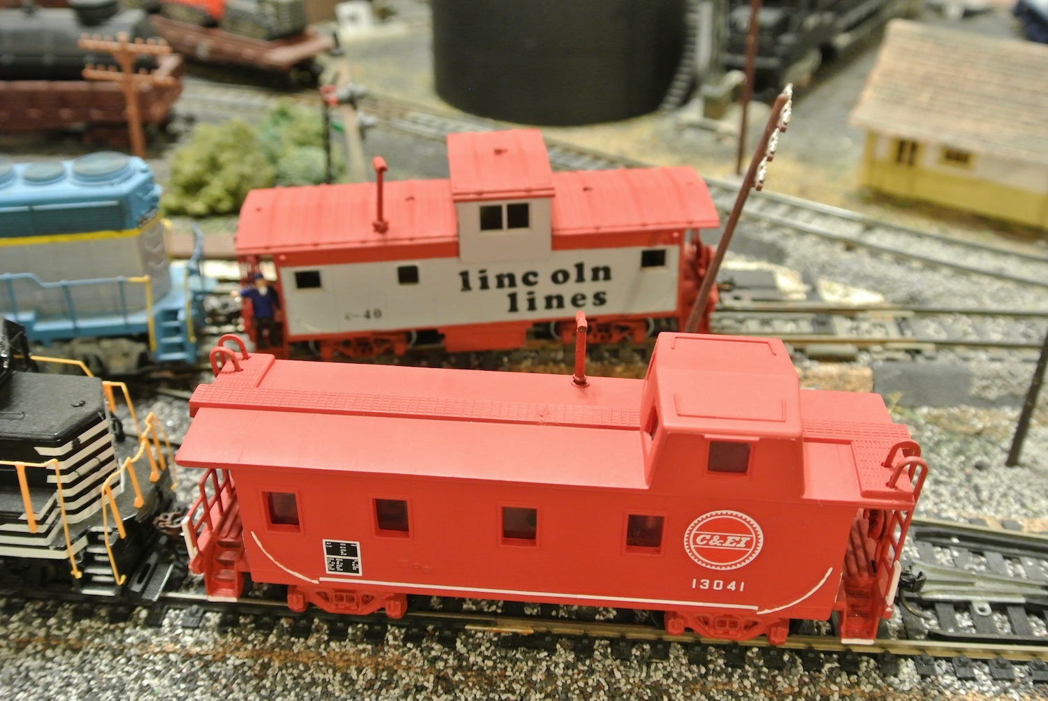 quote:You could just use the one from life like that is a dead ringer, there is one of these that is stuffed and mounted at a city park in St. Charles Mo. in full Wabash colors. I will see if I have some pics.In the meantime here are a couple of cabooses I have modified. The Conrail one is made from two Tyco cars. The C&EI car is a stock Life Like with a repaint. C&EI actually did have a couple of these but they never made it to the Mopac paint scheme. After the merger the cars had there copulas removed and replaced with run of the mill square Magor type copulas before entering the pool on the Mopac. I just wanted one in the post merger scheme with the more stylish copula