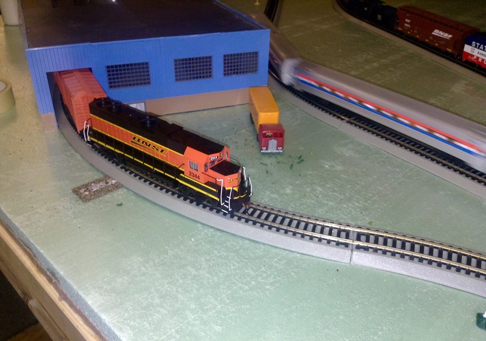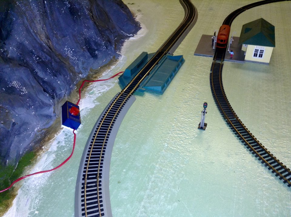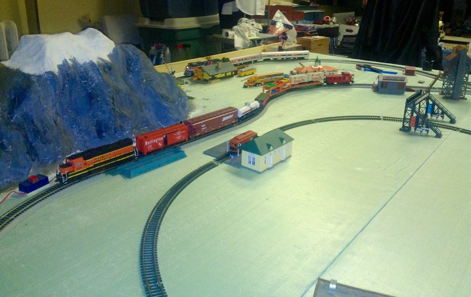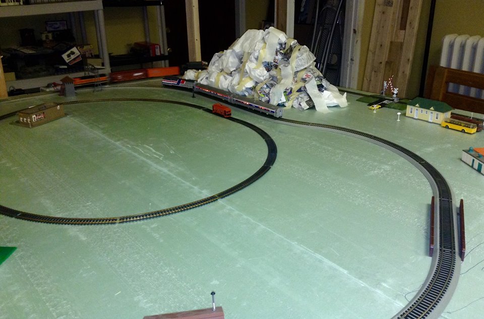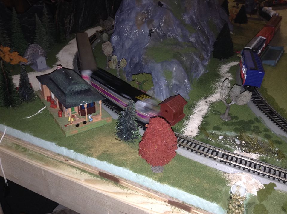 The initial finished setup, with the full train on the tracks.
