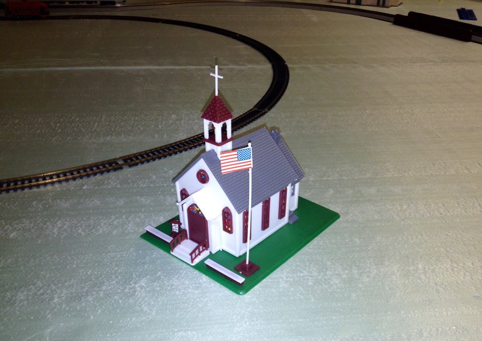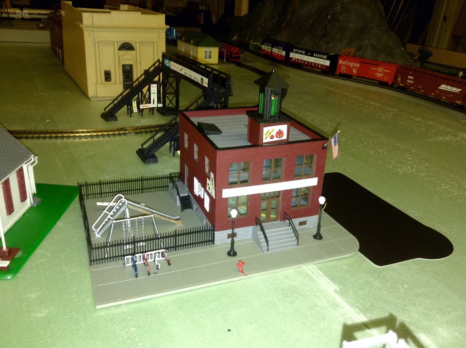 Get a load of how the TYCO Center Street School has turned out. (A friend of mine re-painted it to make it look more like the older school buildings in my area.) He also plans to put shades in the windows, and a few more details.