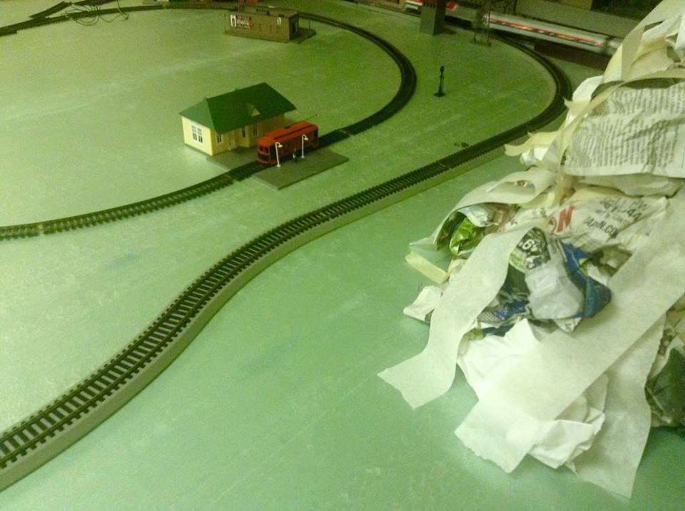A temporary "inner loop" for the other loop of track. Soon we will remove everything from the table and apply the grass mats. Hopefully my Golden Star train set will come in soon by then, so I can bring it into the museum!