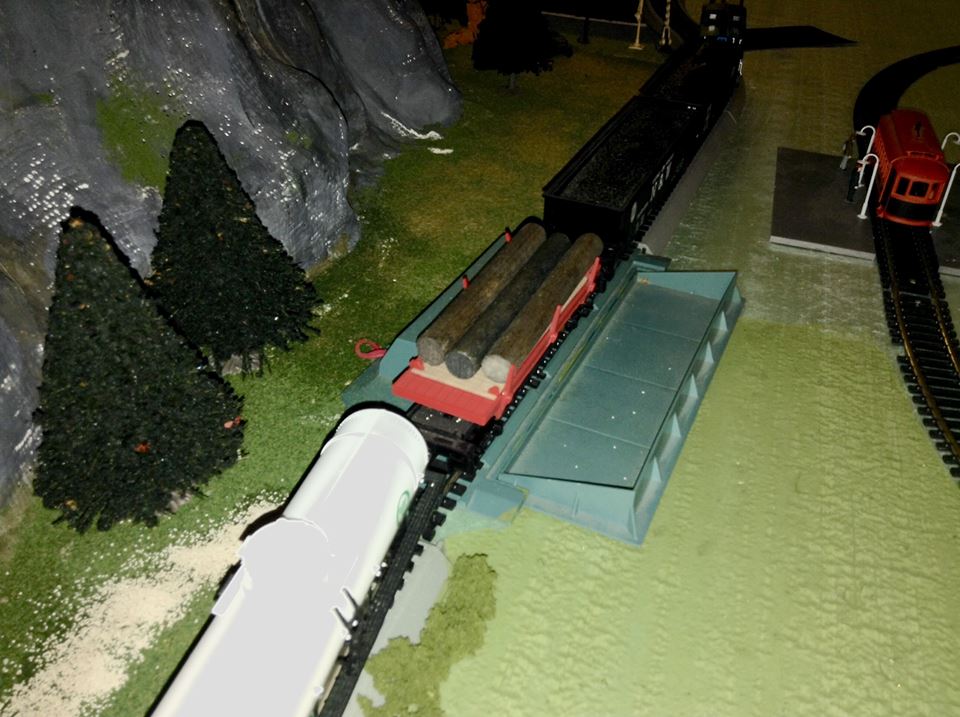 We now got the TYCO log dump station wired up on the layout!