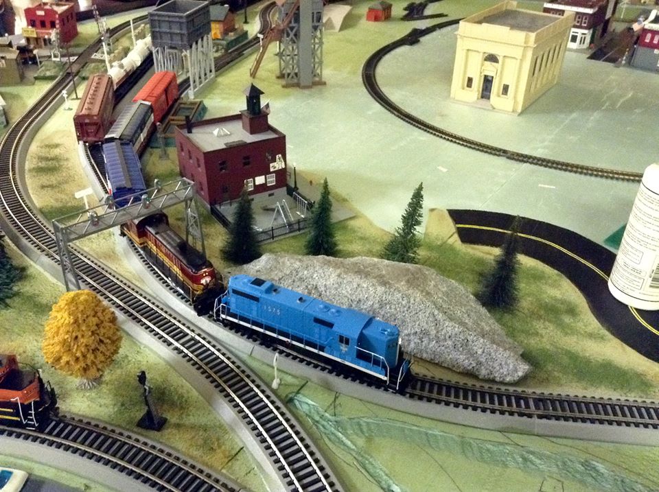 On this layout, older steam trains and modern diesel trains run together!