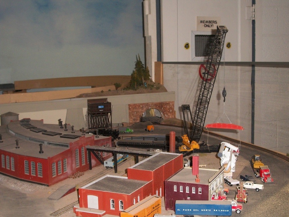 The 42nd Annual El Paso Model Train Club is in full swing. This crane and industrial unit (what is it???) was built by one of our newer members, who prefers not to be named. I guess the posse is out looking for him.