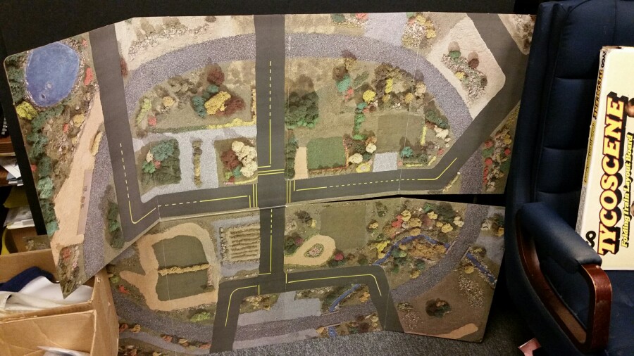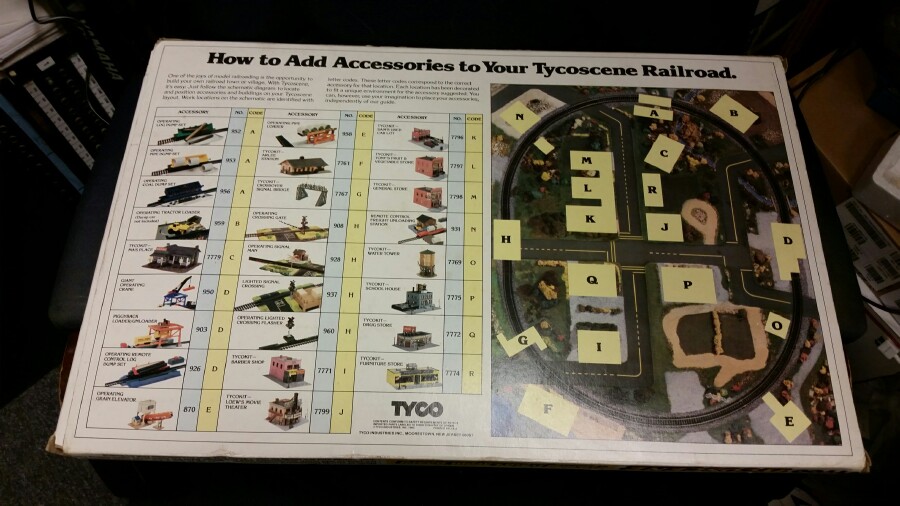 My just-delivered Tycoscene accessory is my post for this week. $20 through an Ebay BIN, in the box with the manual. Box has one corner tattered, but overall, for a 40-year? old product, it's in remarkable shape. The Tycoscene board itself is mint, never been used that I can see. VERY happy with this purchase. I wouldn't mind setting it up at a module show one day just to display it. Maybe I"ll do some Tyco modules, just for those acessories...anyway. Here's the pictures.