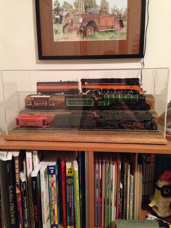 It's a nice case, but I mostly wanted to comment that you've done a tasteful job of arranging the trains you have on display. It' pleasing to the eye.