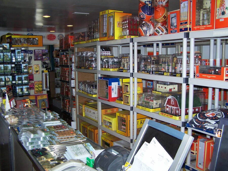 Above, the front store area, all Lionel and MTH O gauge.