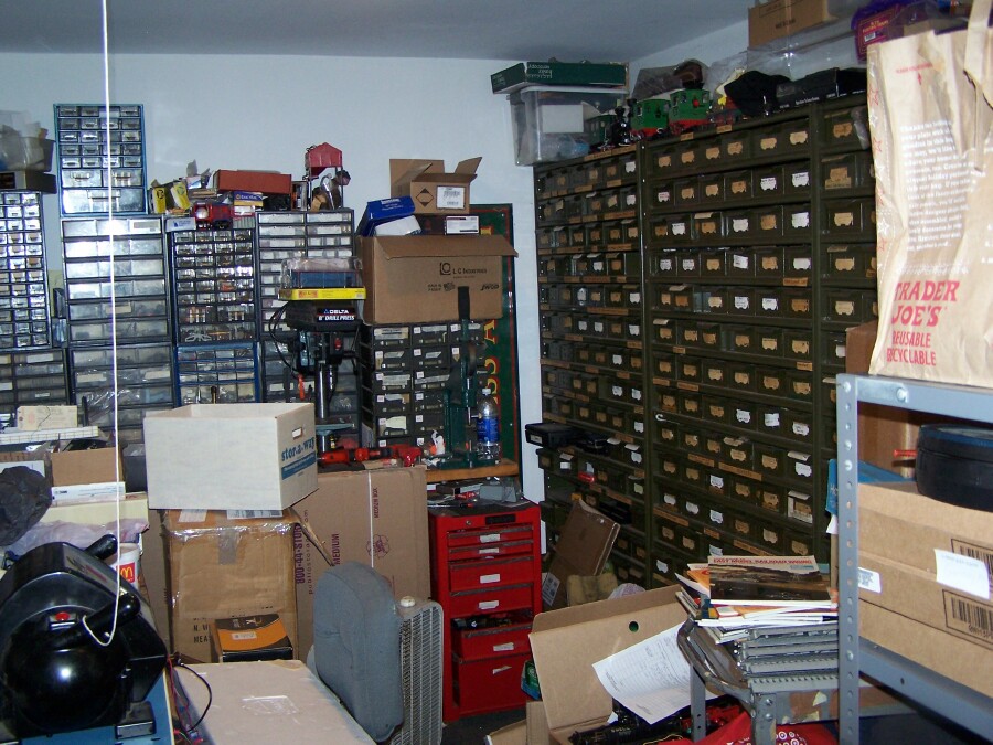 Above, the workshop area where I work ( my bench is in the lower left corner of the picture, in front of the MTH Z-4000 transformer )