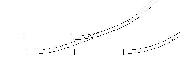 However, the potential problem I was addressing isn't with the snap-switch itself, but the fact that putting them together to make a crossover creates an "S" curve, which can cause derailments when using body mounted couplers. With one car on one half of the "S" curve and the other car on the other half, the couplers go to opposite sides of the track and misalignment occurs, as can be seen here: