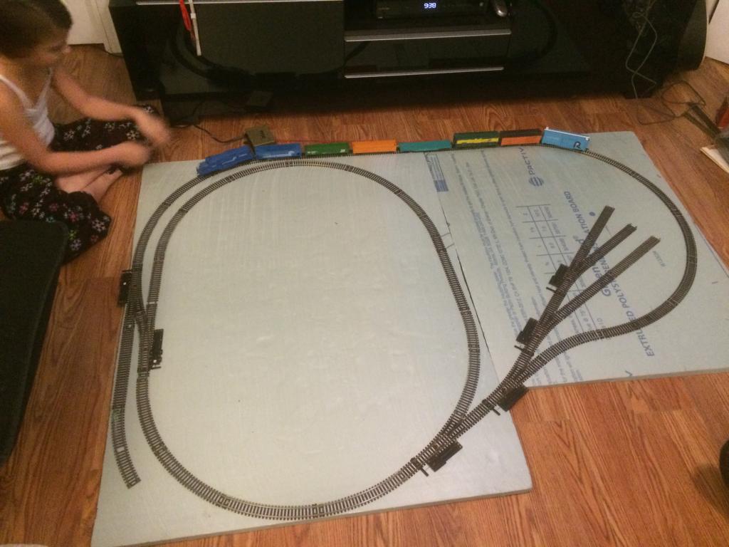 Very ingenious. I love that track plan. Two train operation on a single line. Let me know if you need extra track or a cheap transformer- free plus shipping.