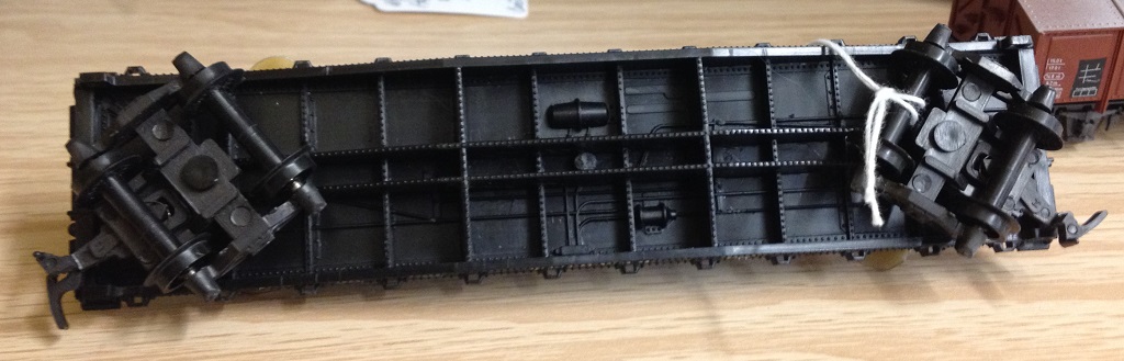 This car is not weighted though. Instead of having a separate deck and underframe, this car is molded in one piece, so a weight can't be sandwiched between the two. Any suggestions on adding weight to this car?