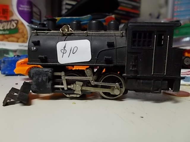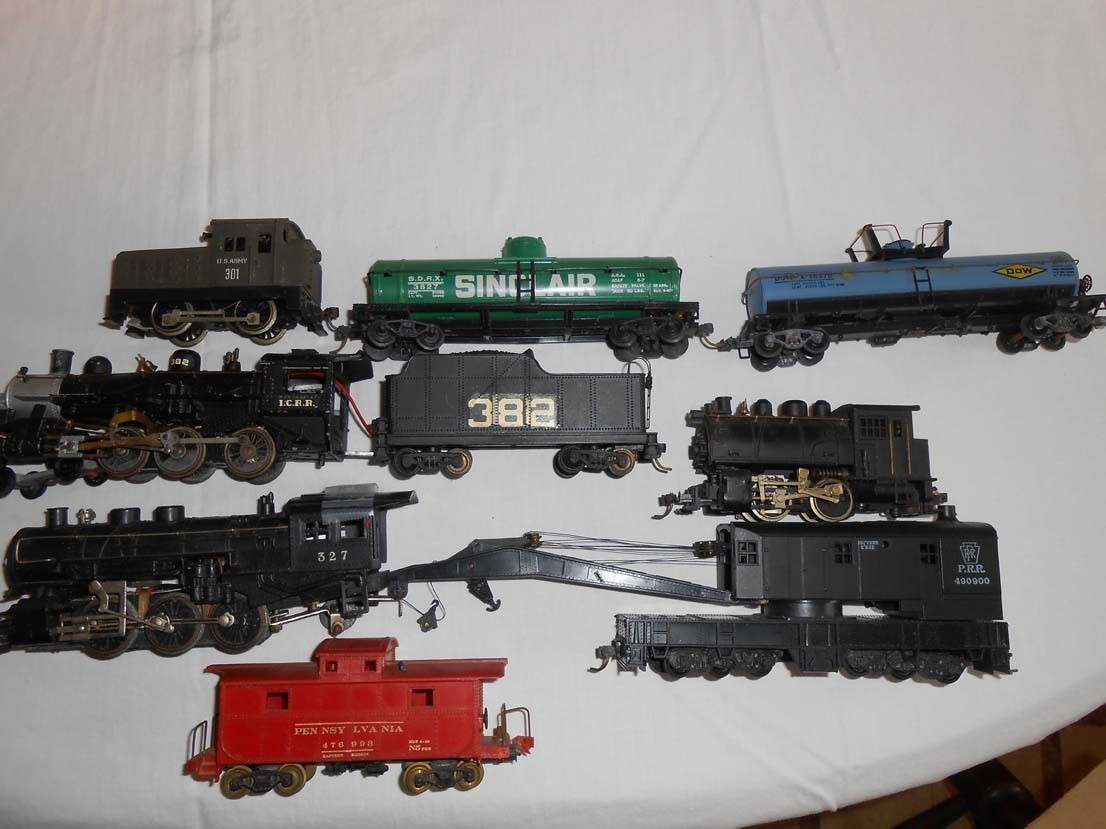 As Nelson says " THIS AINT JUNK" . He didn't mention a very nice MARX Sinclair tank car. It looks new! A Athearn DOW chemical tank car that isn't broken, but with a upside down K-Dee, Or possibly a additional air hose. A Varney Casey Jones. A Champ ( Sakai) 2-6-2 missing a tender. ( Sean do you need one? A Athearn PRR black crane. Last what is lettered as a Penn-Line 4 window eastern steel caboose but is a 2 window version like Roundhouse makes, but is too big and ugly, so it is a HObbyline caboose. Frank