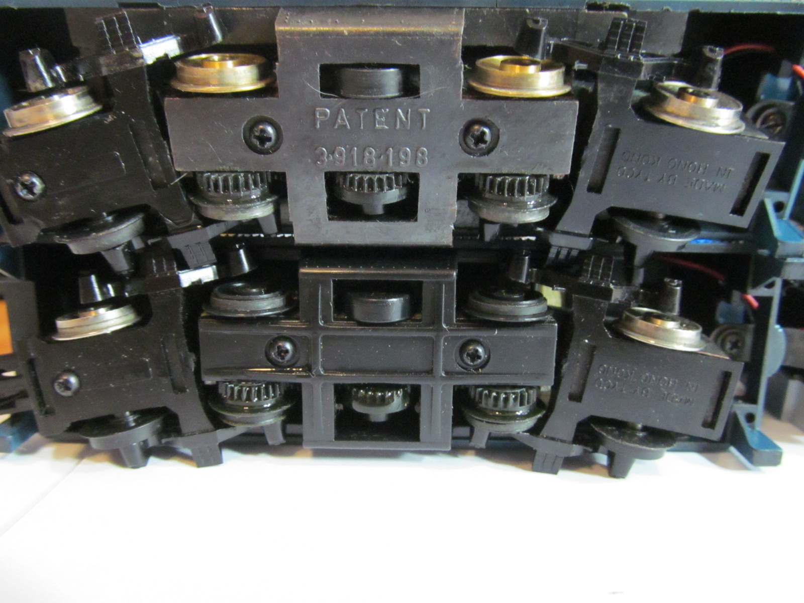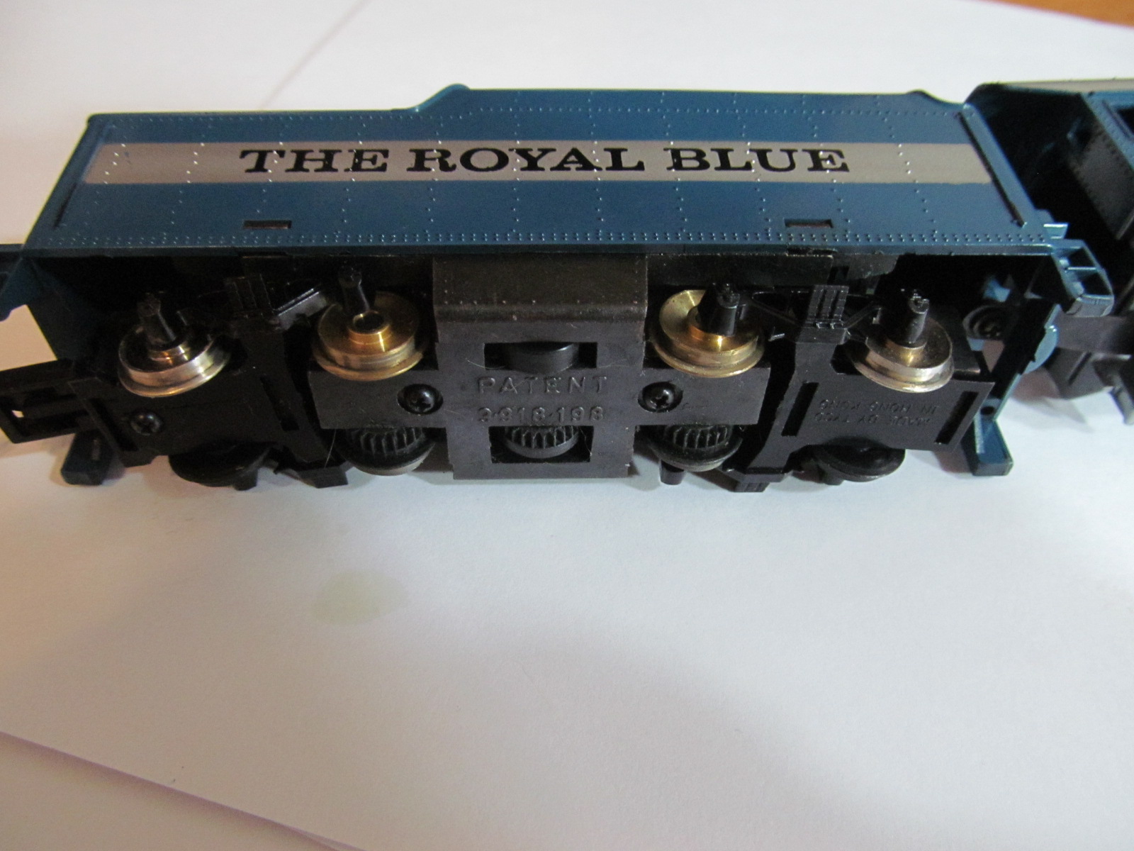 Just serviced a Tyco Royal Blue - replaced dry rotted traction tires - Discovered that the Calumet #505 tires work perfectly on these 2-8-0 as it is power torque driven and the wheels are the same as diesels - also replaced the cracked plastic wheel with a metal side set with NO PROBLEMS - actually runs better in my opinion by doing this - Also noticed a difference in the under carriage = Beginning with the 1977 - the tender frame is all die cast where as later production Royal Blue locomotives were die cast with plastic bottoms - see pictures below - NOTE - WHEN YOU REPLACE WITH METAL WHEEL GEAR - THE PLASTIC VERSION HAS GROOVE FOR TIRE WHERE THE METAL WHEEL DOESN'T NOW - DOES NOT AFFECT OPERATION - IF YOUR REPLACING TIRES ON THE ORIGINAL WITH PLASTIC TIRE - YOU WILL NEED 4 TIRES TOTAL