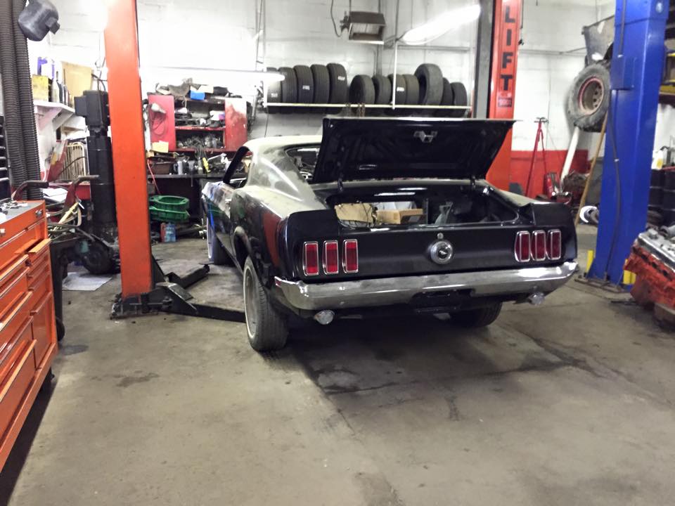 Then she sat. Neither of us had time to work on it. My kids hockey took all my time. But finally, a shop Brian told me about finally had an opening and away she went! Man! Look at the dust that piled up in two years! Since she was in the garage on jack stands and being worked on, we could not wash her. Then the dust accumulated and so I could not cover her. It just got worse from there!