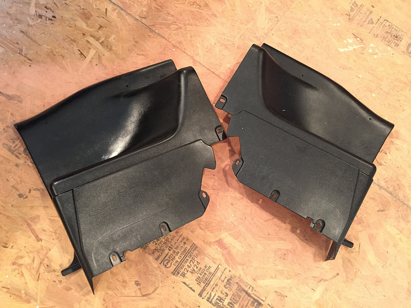 I repaired and painted the rear seat side panels. This morning before work, I epoxied the back side of a crack on the center console and reinforced it with a fibre glass mesh. This evening I will paint it black and tomorrow /Saturday it will be ready to install. I still need to repaint the glove box door. All the rest of the interior trim pieces have been either purchased and or re-painted and restored.