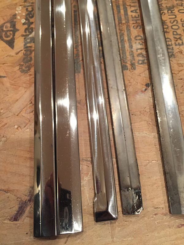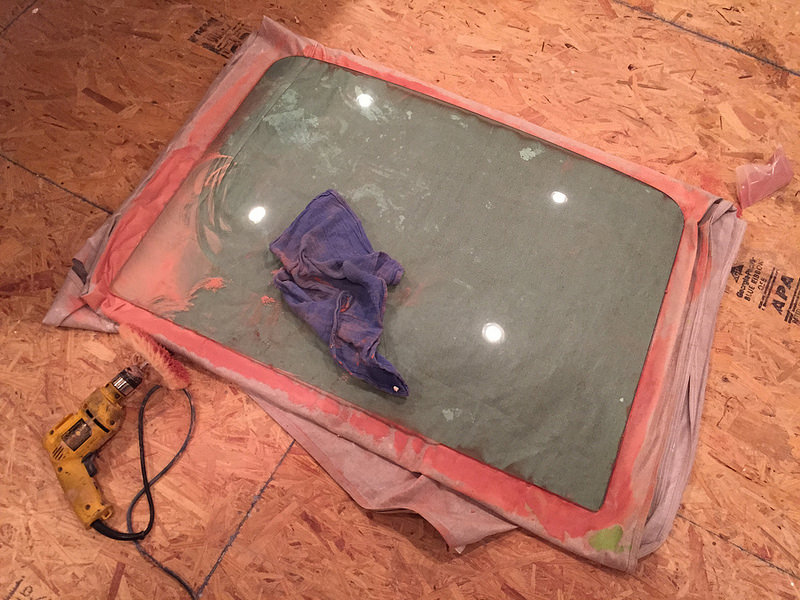 The windshield and rear glass and stainless steel window trim are all going in today. I spent roughly 8 hours over the past two days buffing and polishing the old window trim. The rear glass was polished and the windshield is brand new.