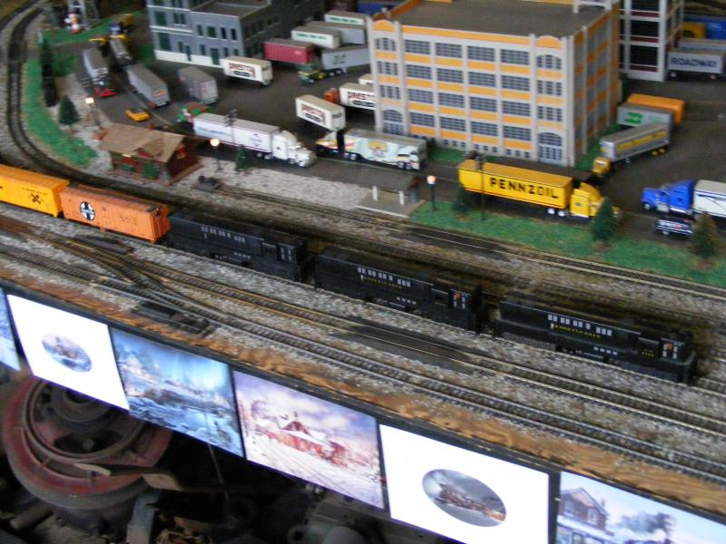 well the IHC Conrail steamer does stick out like a sore thumb in those black steamers  Plus this is how I will do my layout Using Hot Wheels & Matchbox cars Sides I don't blame him for using HWs &MBs Ever priced ONE exact HO car? $20 at miminum  trucks & buses even worse